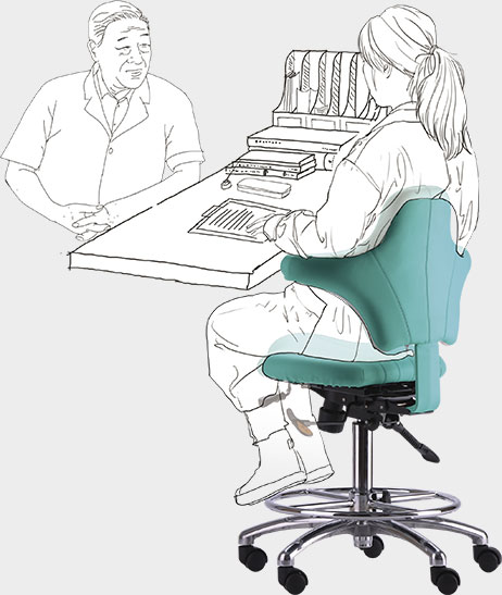 長(zhǎng)時(shí)間保持坐姿時(shí),可在檢查間歇雙肘放在側(cè)翼扶手上,使手臂和肩部肌肉得到放松,減少疲勞,預(yù)防肩周炎及腕管或肘管綜合征。較長(zhǎng)時(shí)間單手操作時(shí),可取側(cè)向而坐,工作側(cè)手臂放在側(cè)翼扶手上,使手臂和肩部肌肉得到放松。