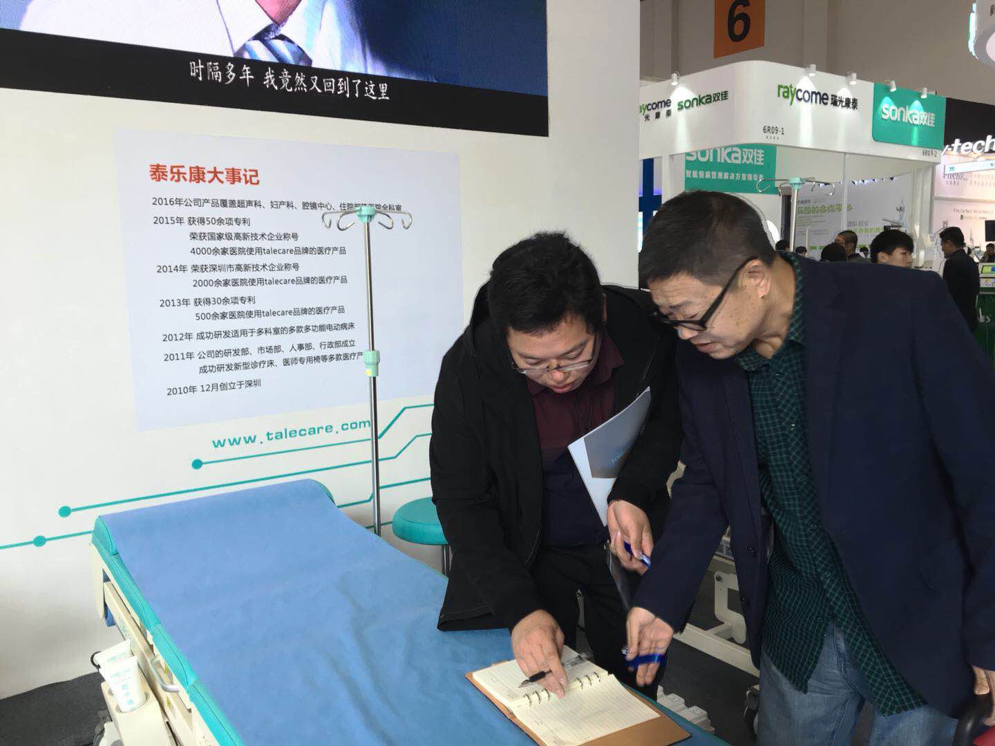 2017年10月29號泰樂康再次參加CMEF,來見證7年的光輝歷程。上午一開展就人氣火爆。深圳市泰樂康科技有限公司董事長陳一紅先生,親臨展位。與客戶零距離溝通交流。
