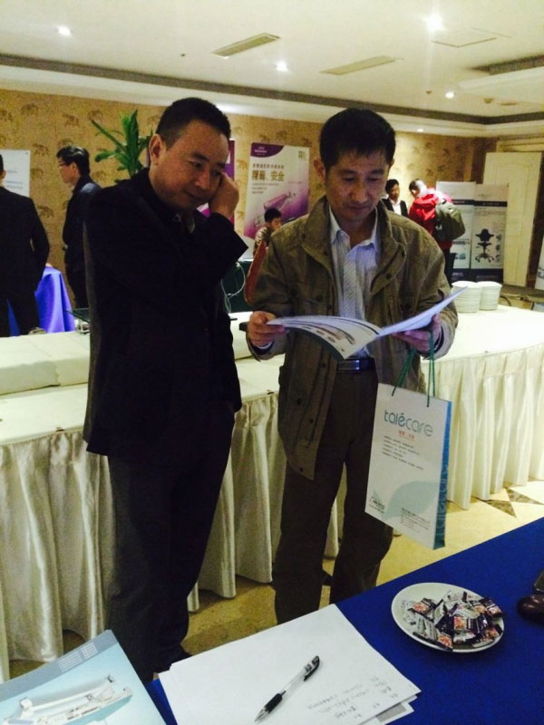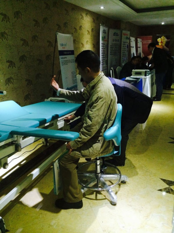 第二屆腫瘤微創(chuàng)、超聲介入學科發(fā)展及臨床應(yīng)用研討會(浙江杭州)于2014年11月7日~9日在浙江杭州第一世界大酒店舉行,泰樂康talecare全程贊助。新產(chǎn)品:電動超聲介入“診療床”,得到廣大醫(yī)生主任的青睞和好評!圖一:會議現(xiàn)場圖二:會議現(xiàn)場圖三:泰樂康展位圖四:浙江陳家輝經(jīng)理在認真給上海瑞金醫(yī)院王主任演示新產(chǎn)品電動超聲介入“診療床”。圖五:王主任看產(chǎn)品彩頁中。。