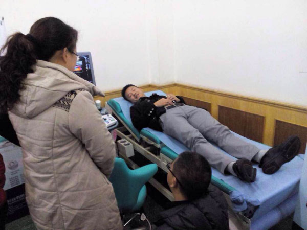 圖三:產品展示廳,客戶體驗電動超聲診療床中。